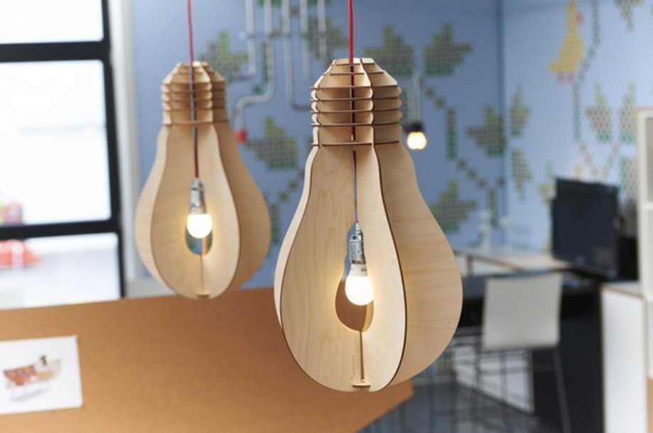 Важно. В самодельных изделиях освещения из дерева запрещается применять в качестве источника света лампу накаливания, она имеет свойство нагреваться и отдавать тепло, есть риск возгорания деревянных деталей осветительного устройства, сделанного из фанеры своими руками