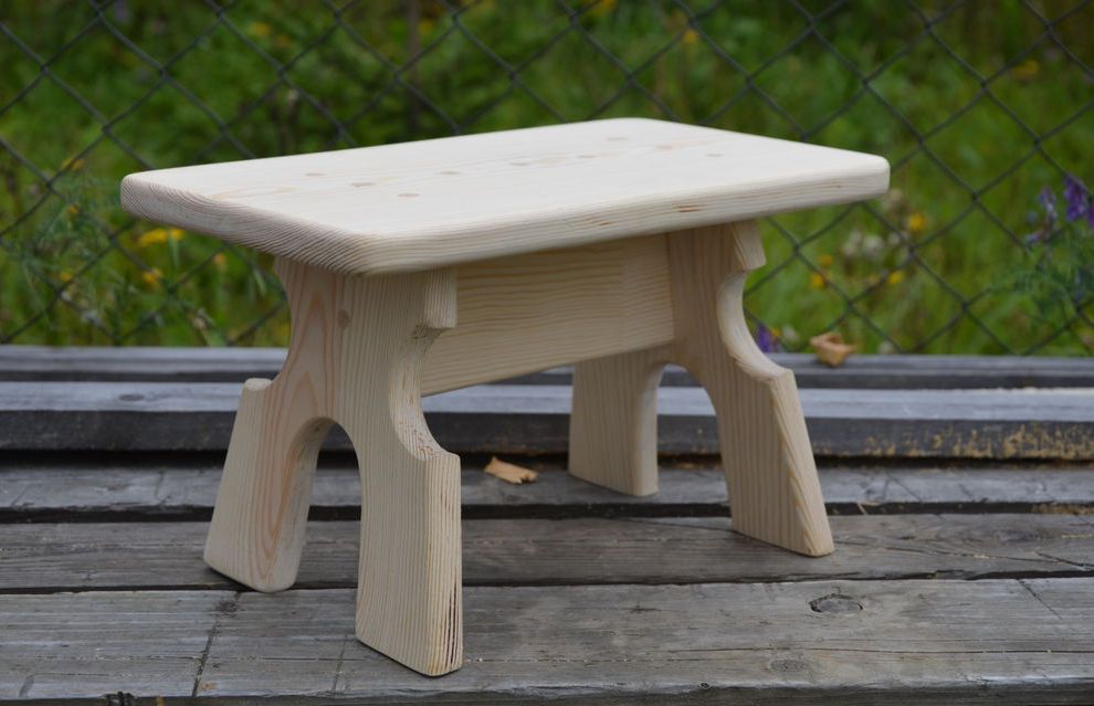 | Дачный | Отличный вариант табуретки, выполненный по типу скамейки. Изделие небольшое, поэтому его легко можно переносить по дому. Для изготовления дачной табуретки нужно использовать только деревянный брус из прочных пород дерева, ведь фанера для такой конструкции не подойдет. |