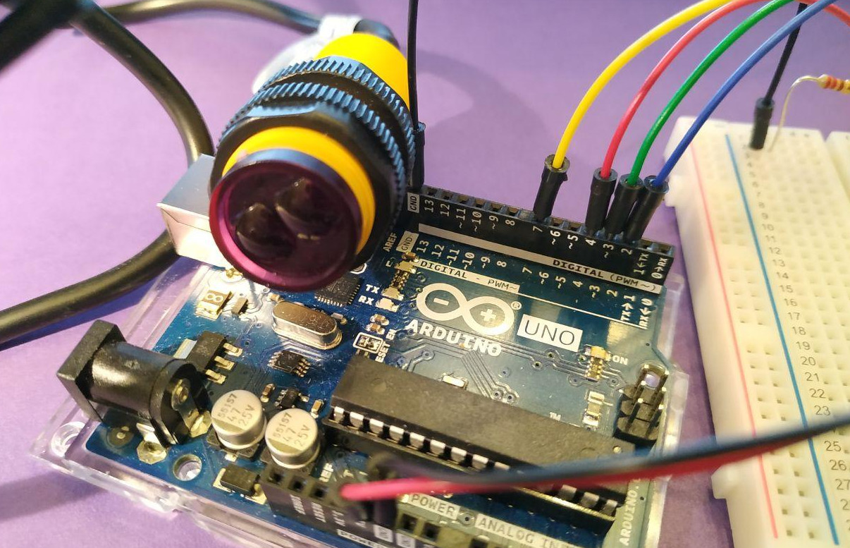 Теперь плата постоянно находится в режиме ожидания, об этом сообщает зажённый красный светодиод. Когда сенсор обнаружит препятствие, плата запустит обратный отсчёт и начнёт мигать синим светодиодом. Когда пройдут 20 секунд, светодиод загорится зелёным, а потом плата вернётся в режим ожидания.