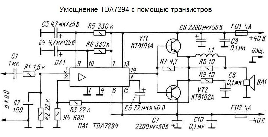Hi-Fi усилитель на микросхеме TDA7294 (TDA7293) — схема