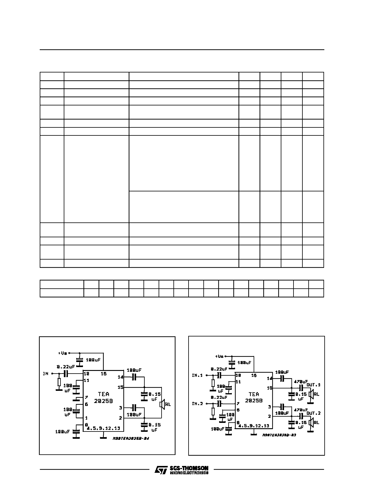 TEA2025B — TEA2025D POWERDIP 12+2+2 PIN CONNECTION (Top view) BRIDGE 16 +Vs 15 OUT.1 14 BOOT.1 13 GND 12 GND 11 FEEDBACK 10 IN.1 (+) 9 GND (sub.) SO 12+4+4 PIN CONNECTION (Top view) BRIDGE VCC OUT 1 Rth j-case Rth j-amb Description 15 °C/W 60 °C/W (*) The Rth j-amb is measured with 4sq cm copper area heatsink (**) The Rth j-amb is measured on devices bonded on a 10 x 5 x 0.15cm glass-epoxy substrate with a 35µm thick copper surface of 5 cm2. 2/9