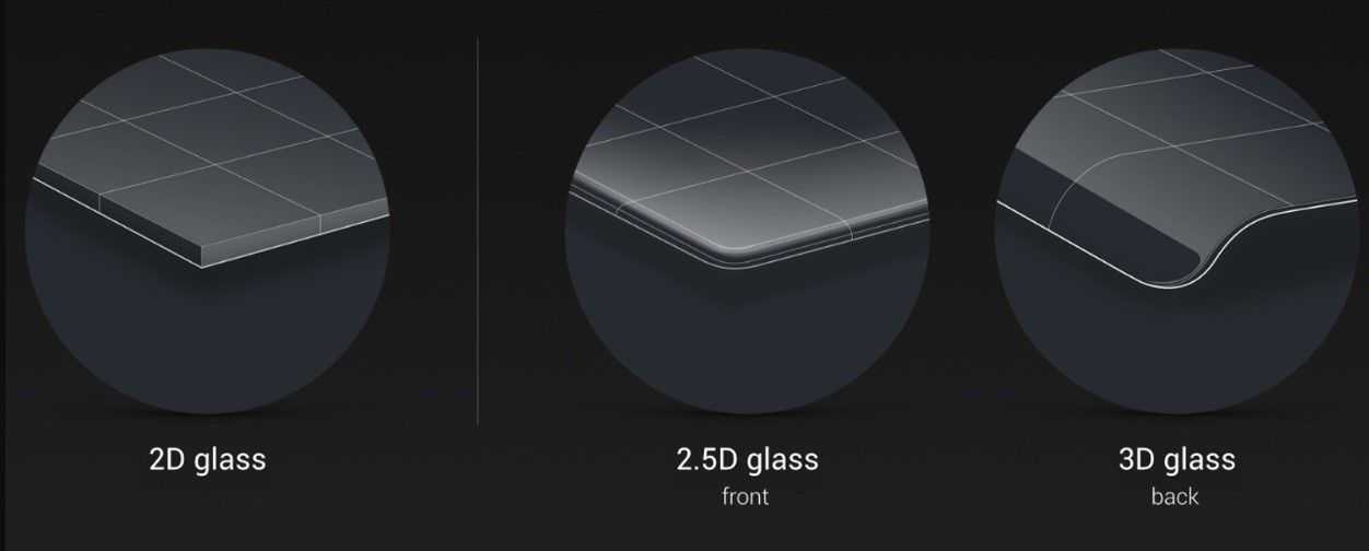 - 2,5D — вариант с небольшими фасками по периметру, которые сочетаются с закруглениями экрана;