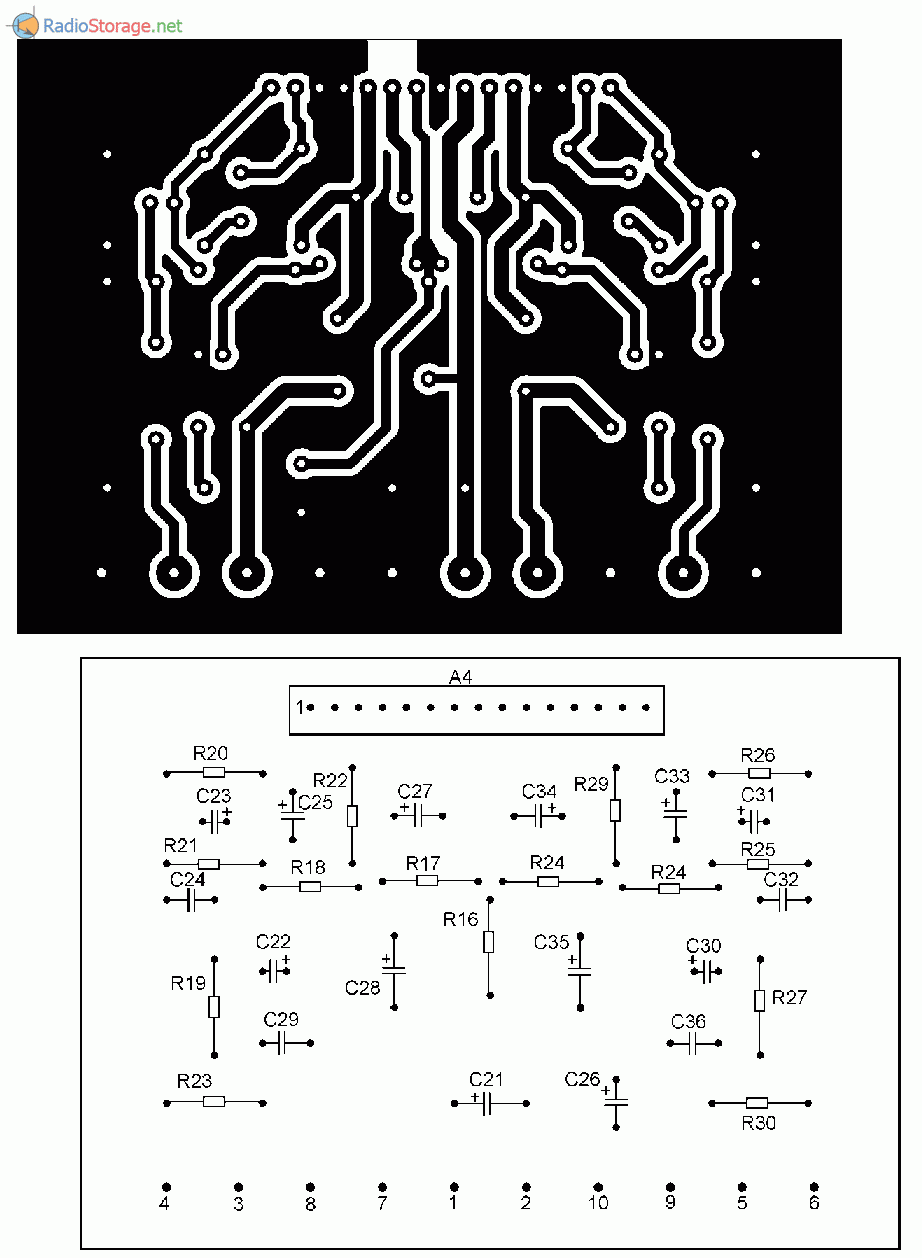 Усилитель собран на двух печатных платах, — на одной предварительный усилитель 34 (рис.З.), на второй усилитель мощности ЗЧ (рис.4.).