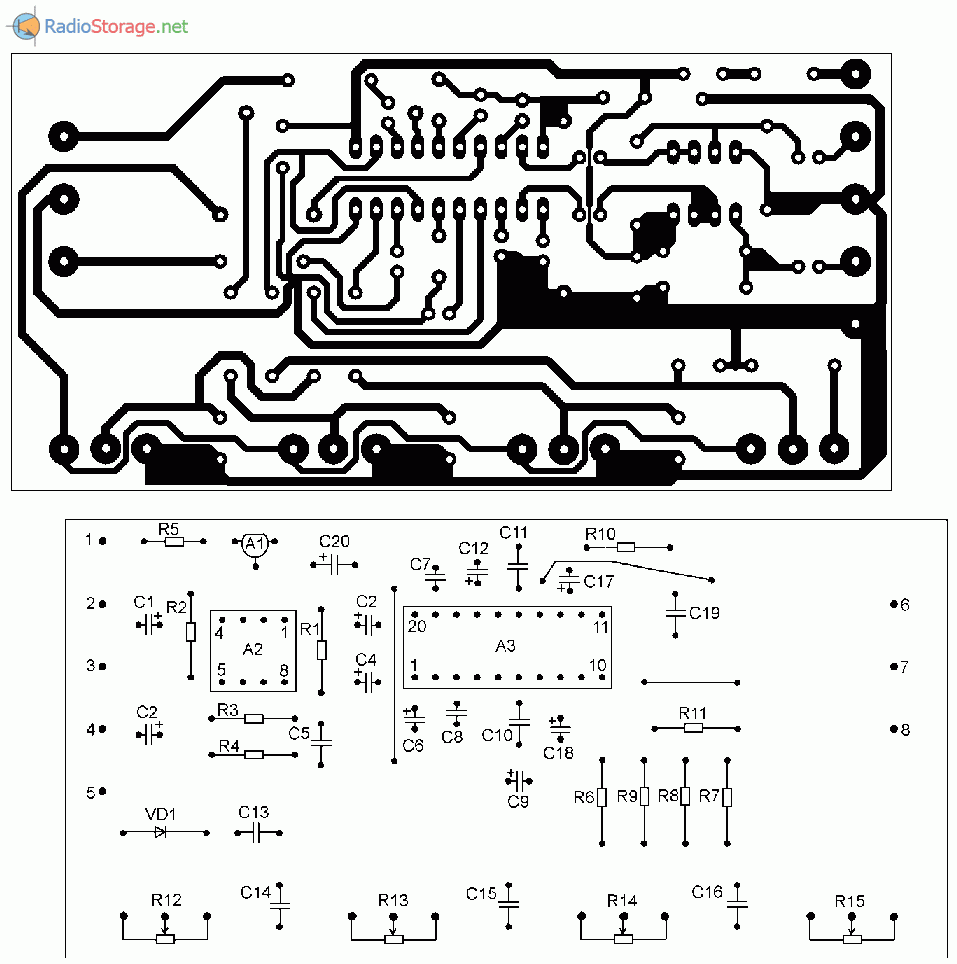 Рис. 3. Печатная плата для схемы темброблока на микросхеме LM1036N.