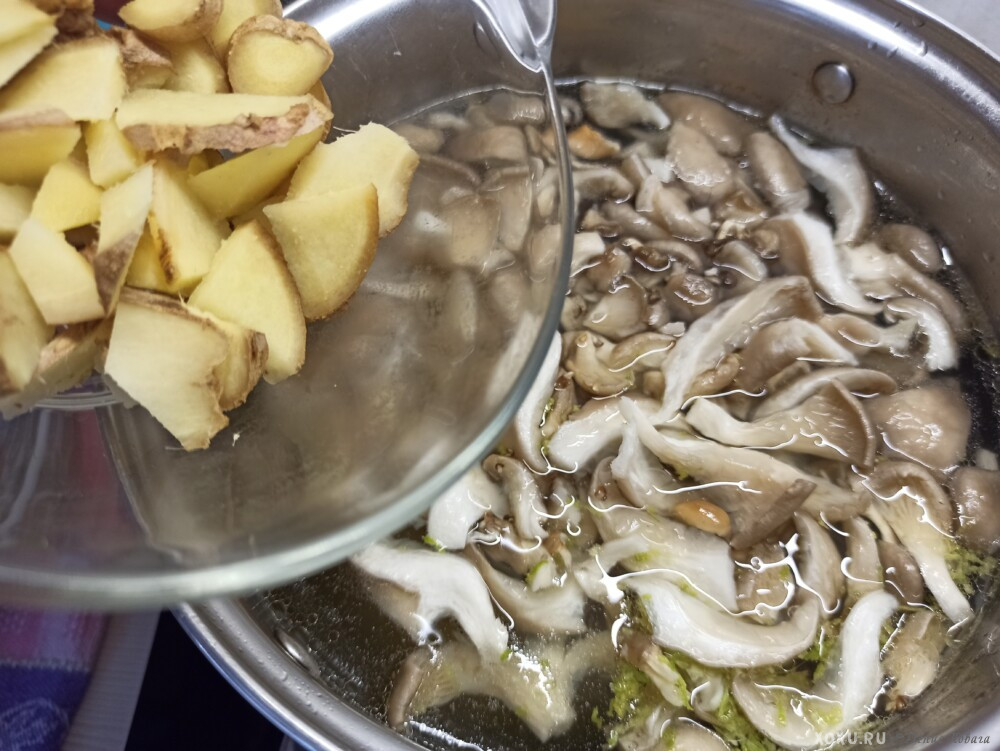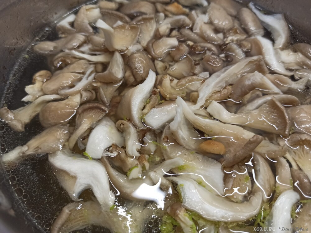 6. Вешенки размораживаем, если нужно. Моем их, обсушиваем. Нарезаем достаточно крупными кусочками.