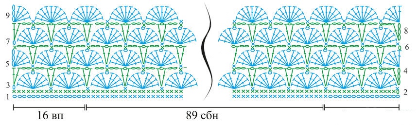 Топ вяжется сверху вниз. Верх, сетка вяжется по схеме, указанной на рисунке