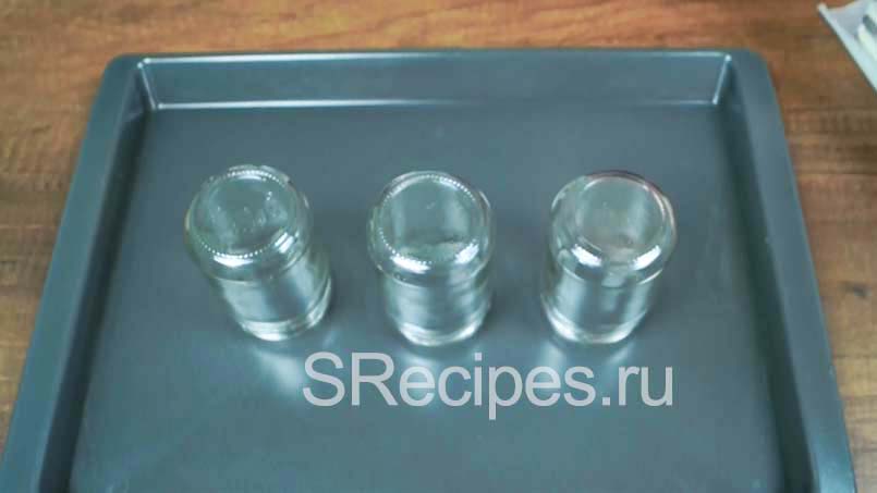 На противень выставить в ряд 3 одинаковые баночки или стакана, а сверху положить пирожное Киндер Пингви, шоколадной основой вниз.