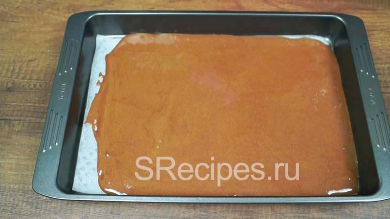 Шаг 3: Застелить форму пергаментной бумагой и перелить приготовленное тесто, всего у нас должно получиться 1-2 коржа, в зависимости от размера формы. Отправить бисквитное тесто в разогретую до 180 градусов духовку и выпекать в течение 30-40 минут.