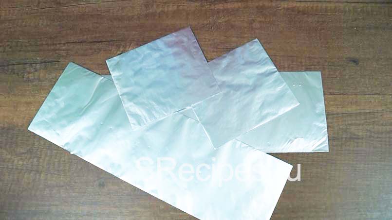Чтобы бока пирожного Пингви были ровными и не вытекал ганаш, нам понадобятся полоски картона, размером с наши коржики, обернутые фольгой.