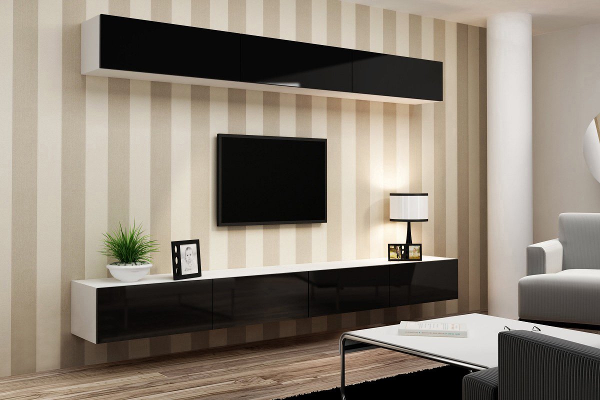 Кстати, навесные полки под телевизор привлекают внимание к себе именно внешней формой, а уже только потом функциональностью. Так что первый цвет нужно подбирать правильно – он является основным
