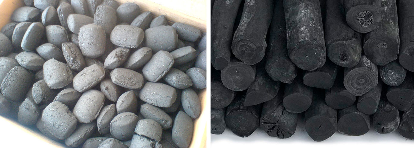 Сегодня главным «конкурентом» традиционным углям из дерева являются древесные брикеты. Они производятся из нескольких ингредиентов. В составе могут присутствовать: