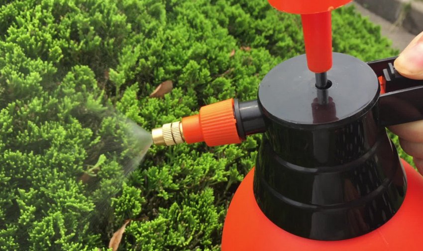 Как правило, для того, чтобы отпугнуть вредителей, достаточно народных средств. Деревья и кустарники периодически опрыскивают настоем луковой или чесночной кашицы, эти же растения можно высадить неподалёку. Хотя бы раз в месяц туи полезно обрабатывать пеной дегтярного, зелёного калийного или хозяйственного мыла. Ей опрыскивают крону, оставляют на 30–40 минут, затем смывают из лейки или шланга.