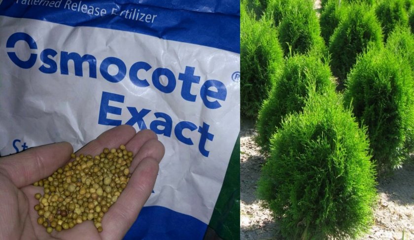 На каждый м² приствольного круга разбрасывают 0,5 кг средства и заделывают в грунт. Популярны и минеральные комплексы для хвойных растений, например «Осмокот».