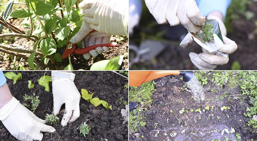 Заготовку черенков для размножения рекомендуется проводить в первой половине пасмурного дня при температуре не ниже 0 и не выше 25 градусов, чтобы в них сохранилась влага. Для укоренения рекомендуется использовать зеленые молодые побеги или полуодревесневшие. Главное, чтобы они имели «живую» верхушечную почку, что гарантирует полноценное развитие саженца.