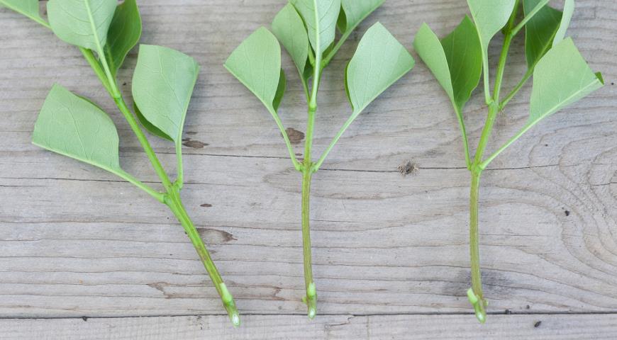 На фото: правильно нарезанные черенки сирени (при летнем черенковании)