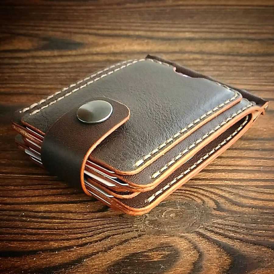 Из плотной кожи можно сделать зажим для денег или обложку на блокнот, паспорт или любимую книгу.
