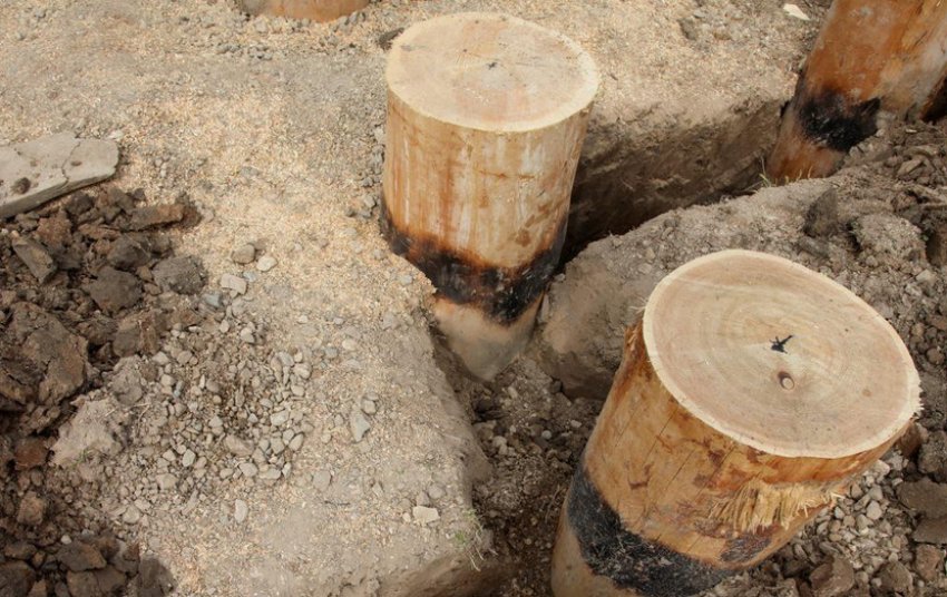 - применяют бурение ям для заколачивания брёвен;