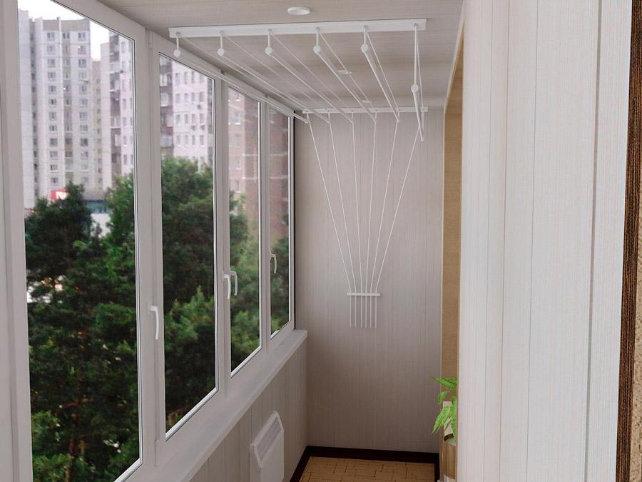- Наличие зоны отдыха на балконе. Балконная зона отдыха предполагает установку регулируемых по высоте потолочных вытяжных сушилок или монтаж наружной сушилки.