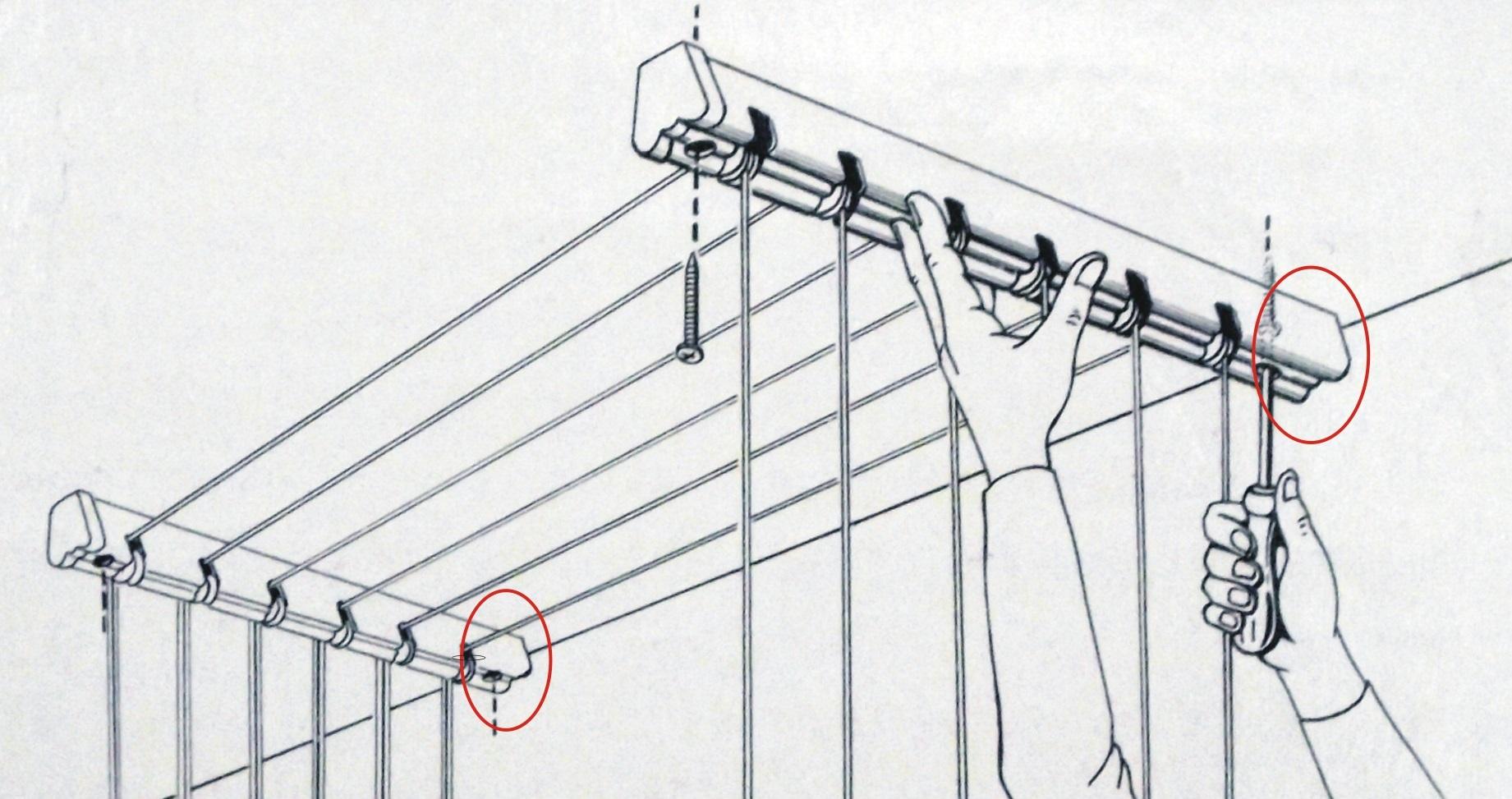 Веревки также должны быть прочными и надежными. В процессе эксплуатации они будут намокать и растягиваться, поэтому некоторые владельцы подобных сушилок советуют обработать их перед монтажом парафином.