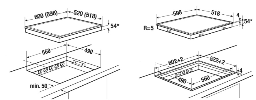 При этом необходимо сделать небольшой зазор. Если выступ имеет длину в 15 мм, то от основной линии размер варочной поверхности необходимо отступить только 10 мм. Пятимиллиметровый зазор требуется для беспрепятственного монтажа варочной панели в подготовленное отверстие.