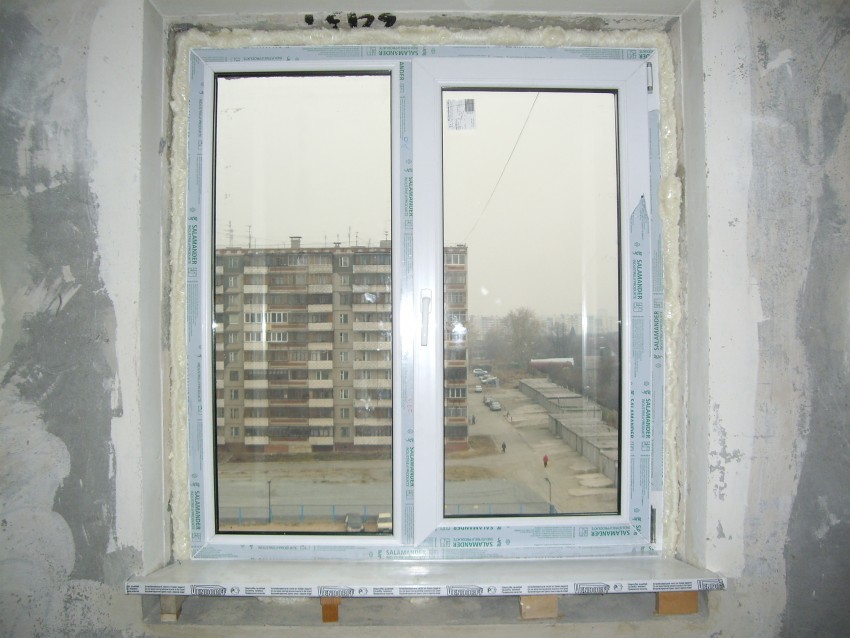 Зачищаются излишки пены, устанавливаются откосы. После завершения всех работ снимаются защитные плёнки.
