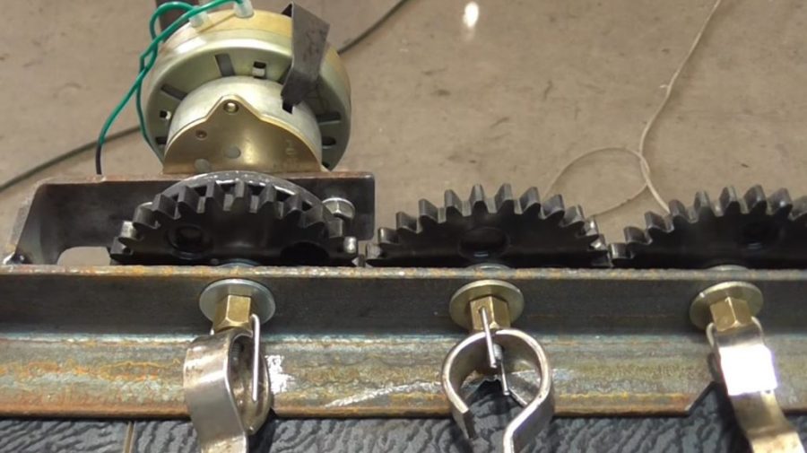 После установки шестеренок нужно металлической полосой скрыть их. Это обеспечит безопасную работу устройства.