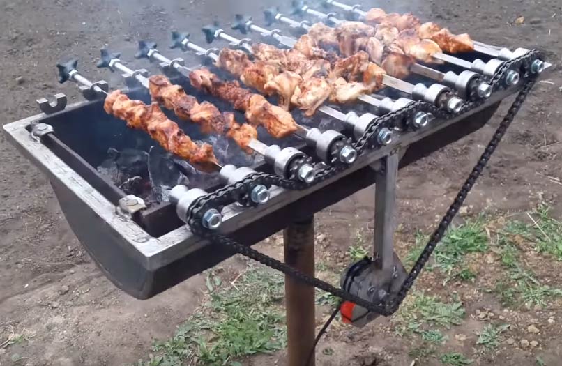 Воплотить идею мангала с электроприводом возможно как начинающему самоделкину, так и опытному мастеру. Обдумывание подходящего принципа работы механизма и подбор нужных деталей приведет к несомненному успеху.
