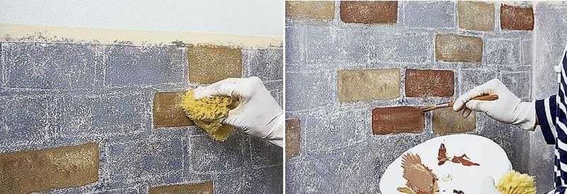 Если «мокрые» или «пыльные» работы не ваш конек, но вы умеете хоть немного рисовать, кирпичную стену можно нарисовать. Нужны будут акриловые краски, кисти, пара натуральных губок, малярный скотч, плотные бумажные тарелки для смешивания красок. При разведении красок помните, что при высыхании акриловые краски темнеют. И еще: они быстро сохнут, но свеженанесенные можно убрать чистой тряпкой смоченной в воде.