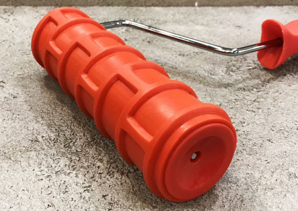Полимерный валик Жёсткие контактные поверхности «склонны» к оставлению недостаточно чётких отпечатков. Жёсткие выступы при извлечении из раствора во время прокатывания тянут края смеси за собой. Кроме того, растворы могут налипать на пластик, так что инструмент требуется регулярно очищать.