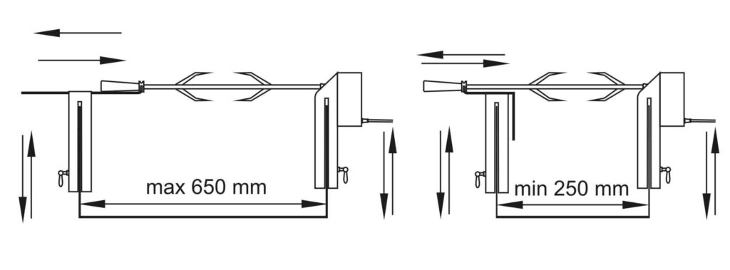 Вопрос по размеру рабочего прута. Руки кулинара должны быть удалены на безопасную дистанцию от огня. По этой причине отрезок прута, оказывающийся за ограничителями, в длину должен достигать минимум 1 м.