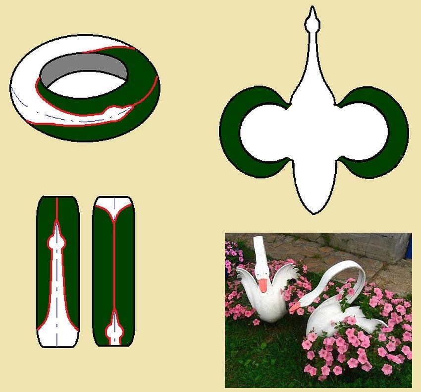 Фантазия людей безгранична и делают они из старых автомобильных покрышек удивительные украшения. Самые распространенные поделки — фигуры птиц и животных. И самый любимый, пожалуй, персонаж — лебедь. Получается он грациозным и похожим, особенно, если знать некоторые хитрости.