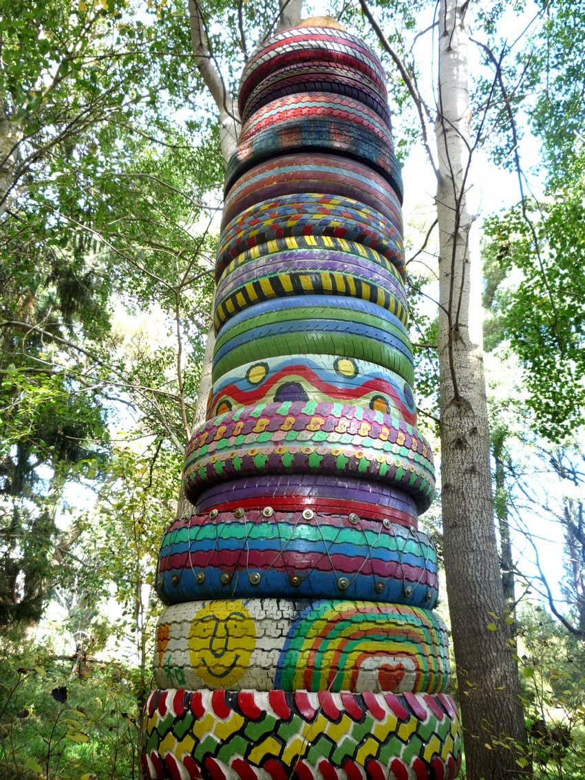 По аналогичной технологии можно сделать многочисленные фигуры для украшения участка или сада. Проще всего делать лягушку: тело — одна-две покрашенные в зеленый цвет шины, лапки можно сделать из обрезков боковушек или каких других материалов, глаза — кто что придумает — кто-то даже делал из пластиковых стаканчиков или маленьких шин, видимо, от детской коляски.