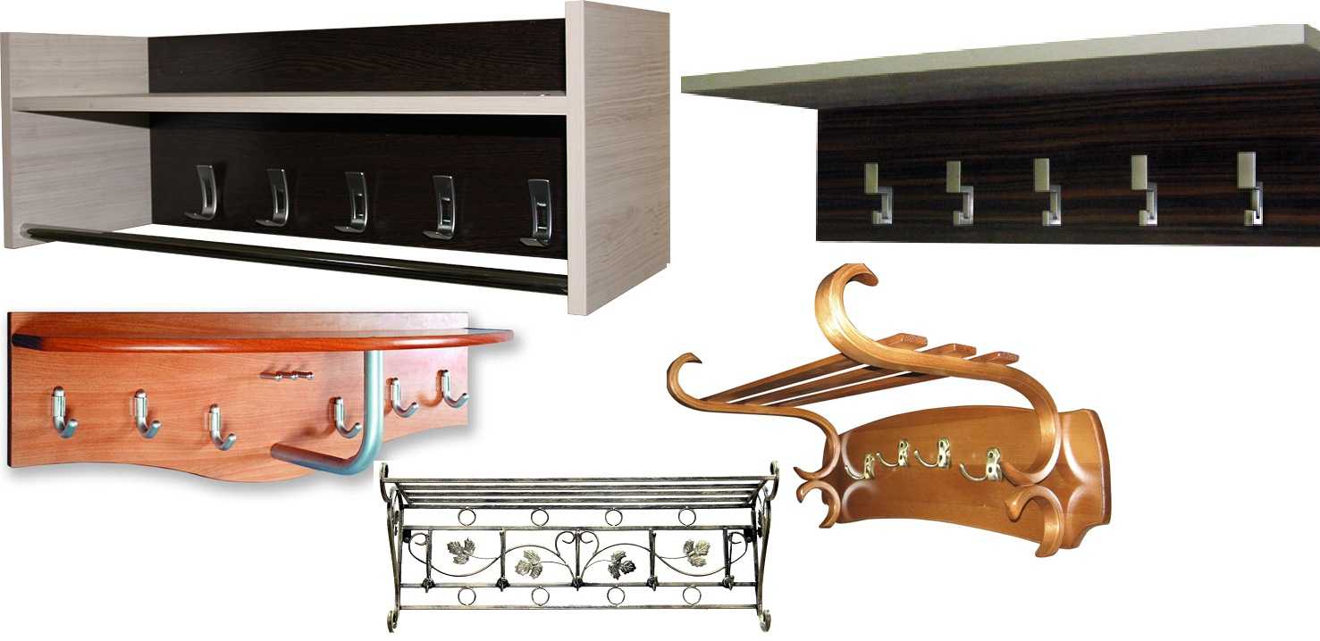 Если говорить о конструкциях, то их не очень много. В традиционном исполнении это планка, на которой закреплены крючки. Планки могут располагаться вертикально или горизонтально. Вертикальные варианты позволяют зрительно увеличить высоту потолка, потому в прихожие покупают чаще всего их. Зато горизонтальные компактны и могут располагаться даже к небольшом коридоре.