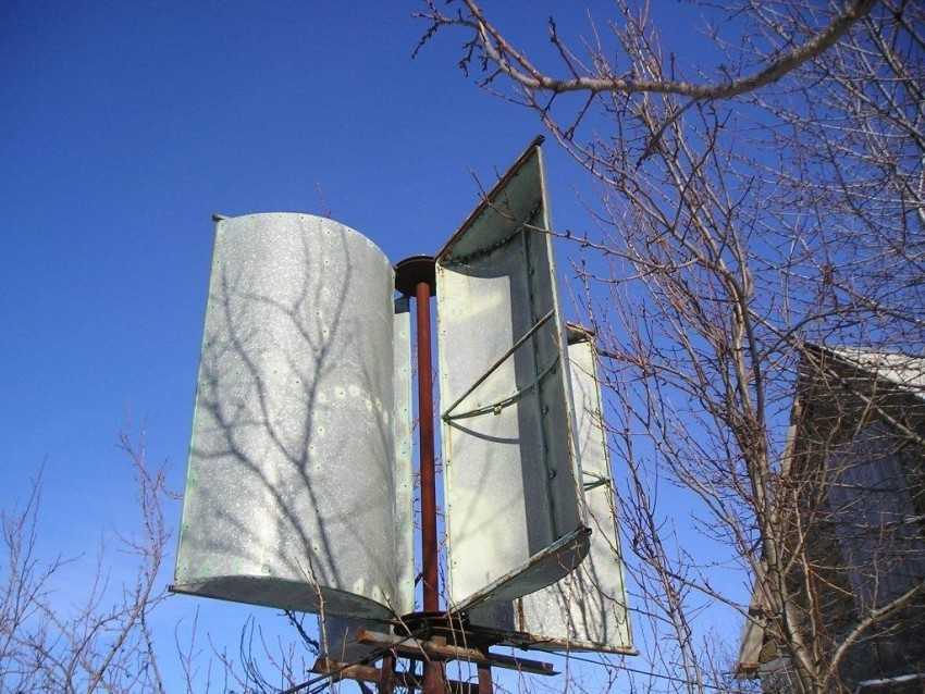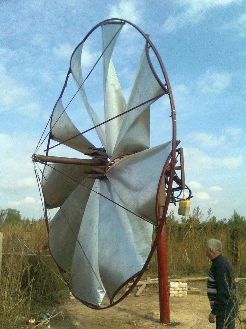 Вращающиеся части делаются на основе одной из систем, наиболее доступной для воссоздания своими руками. Лопасти изготавливаются из отрезков труб, распиленных пополам металлических бочек или согнутого определенным образом листового металла.