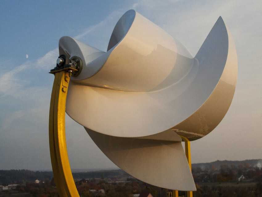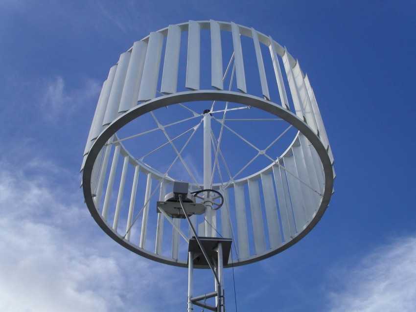 Лопасти вертикального ветрогенератора имеют выпукло-вогнутую форму. Так как обтекаемость выпуклой стороны больше, чем вогнутой, такой ветрогенератор вращается всегда в одном направлении независимо от направления ветра, что делает ненужным поворотный механизм в отличие от горизонтальных ветряков