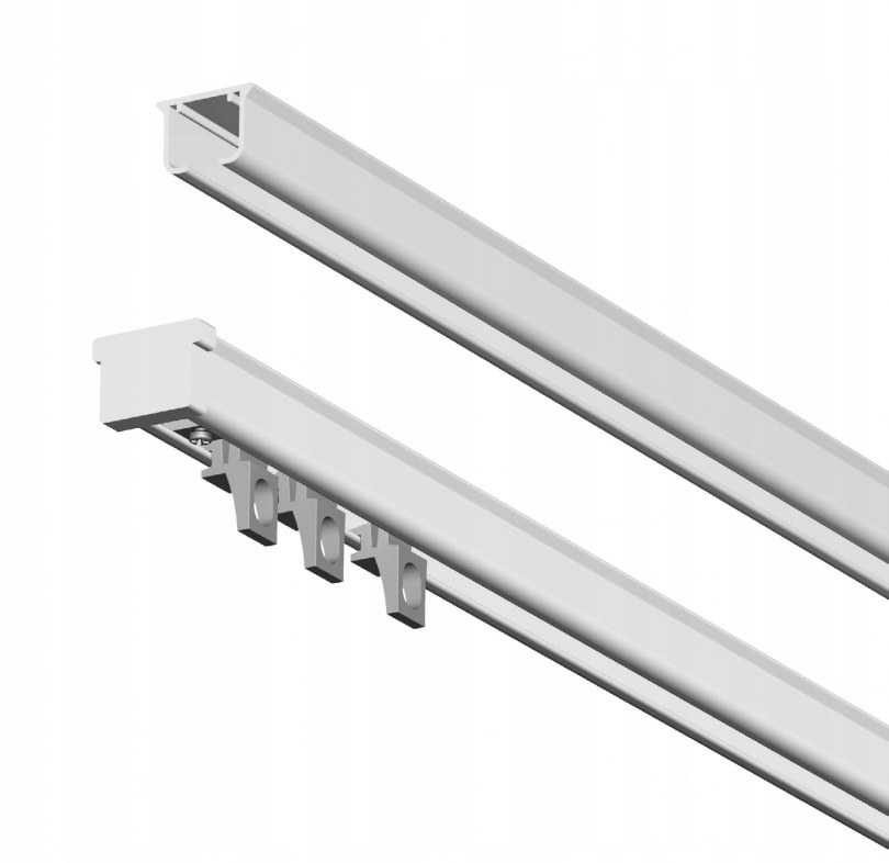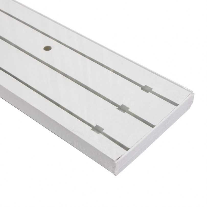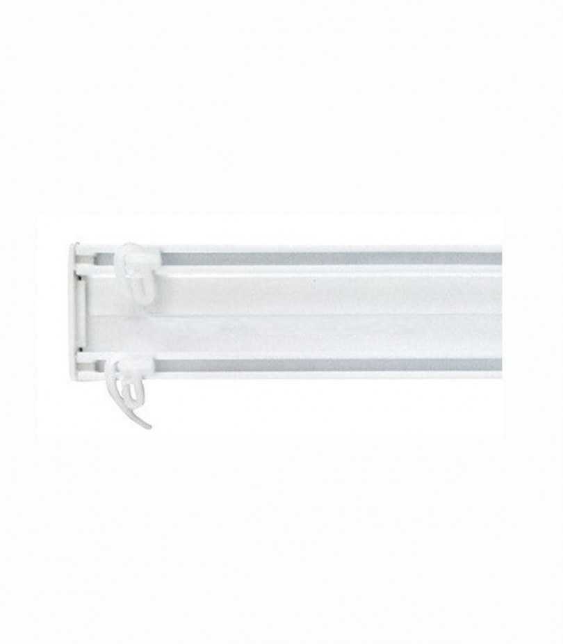 - Шинные, или рельсовые конструкции. Это планки из пластикового профиля. В планках сделаны дорожки, в которые вставляются бегунки с креплением для штор. Сегодня ассортимент шинных карнизов отличается разнообразием: есть одно-, двух и трехрядные модели, некоторые конструкции даже могут допускать перехлест штор.