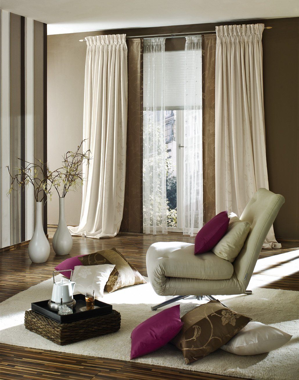 - иногда используются гардины, нижняя часть которых струится по полу;