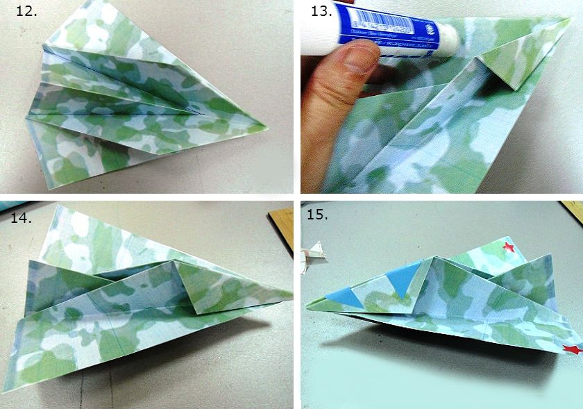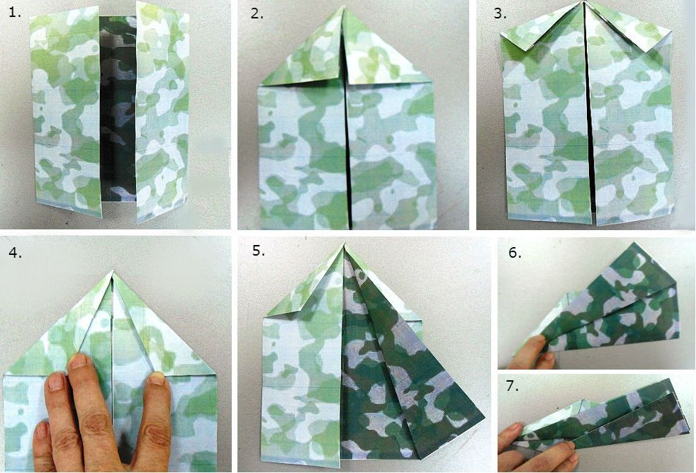 Вот такую необычную военную технику-оригами можно сделать своими руками. Для большей реалистичности стоит взять декоративную бумагу с камуфляжем или самостоятельно нанести «пятнистый» рисунок. В основе лежит базовая форма «Двери».