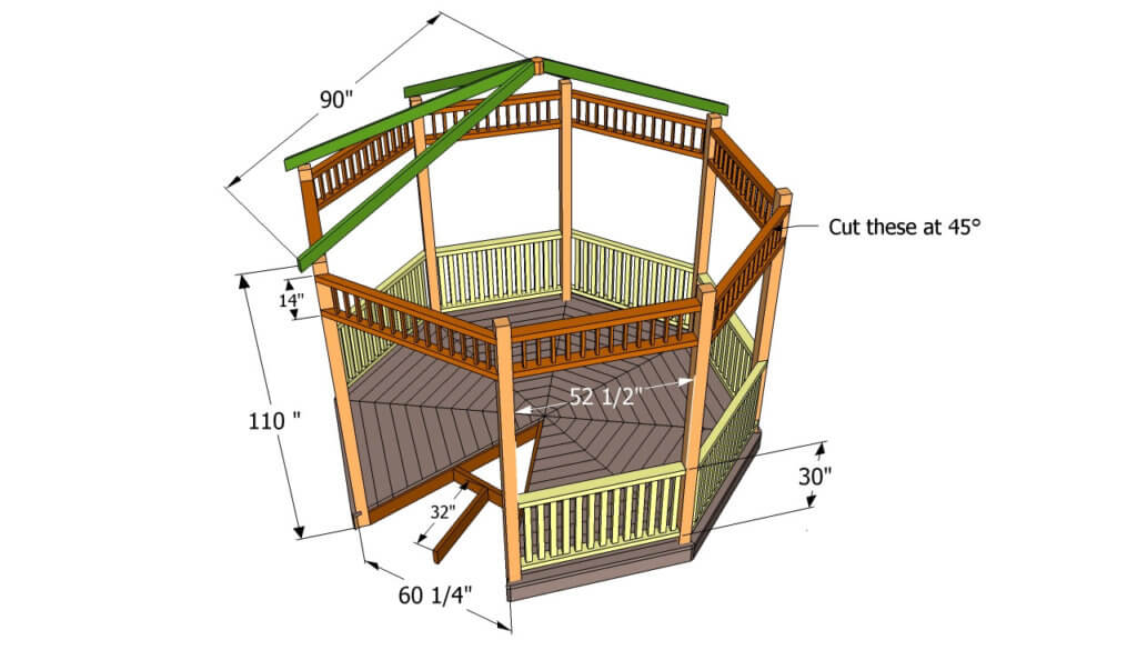 Чтобы у Вас получилась восьмигранная беседка своими руками, чертежи такой беседки являются острой необходимостью. Далее представлен подходящий чертеж такой беседки.