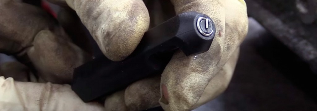 - Ударьте по хвостовику инструмента молотком. Поводок должен сломаться в месте надреза, который и предназначен для этой цели. На вставках большого диаметра (от М14) иногда легче отломить его с помощью длинногубцев движениями вверх-вниз.