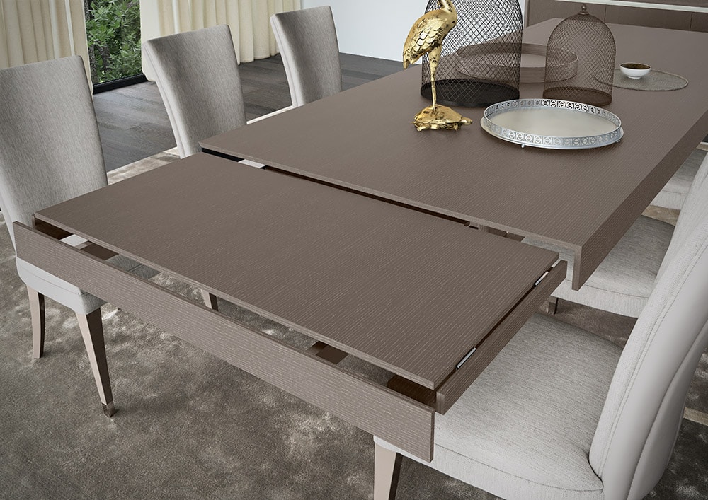 Создавая большие обеденные массивные варианты, не обойтись без механизма для раздвижного стола.