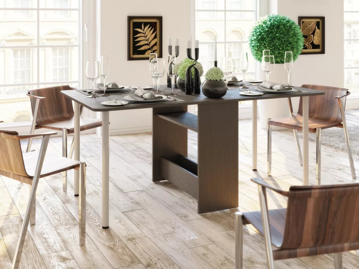 Раздвижные столы пользуются широкой популярностью среди жителей города, ведь в квартире не всегда получается поместить громоздкую мебель. К преимуществам можно отнести: