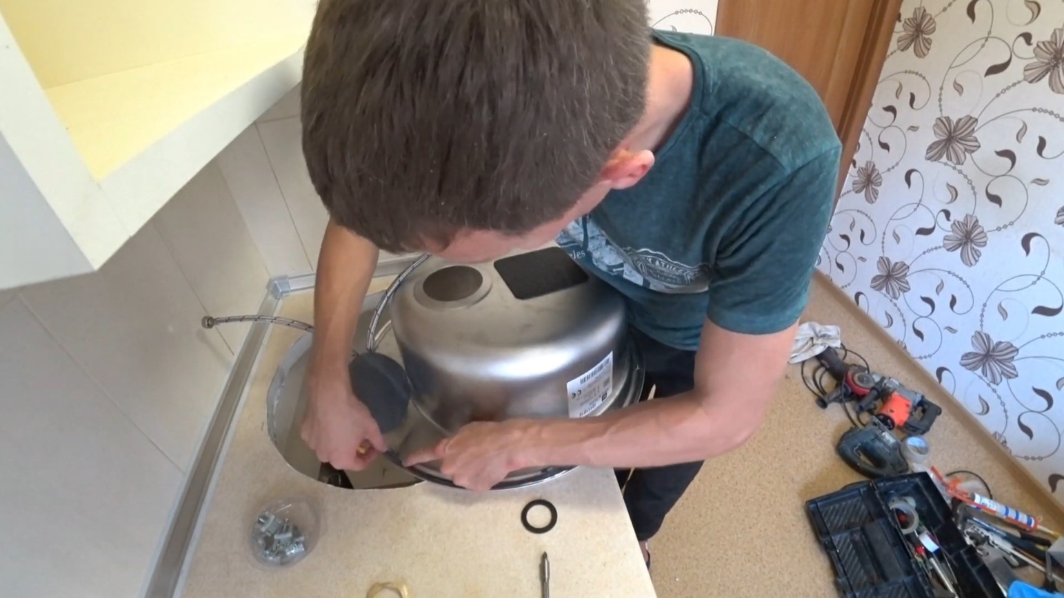 Выдавившийся из-под мойки силикон кропотливо протрите. Наша мойка установлена.