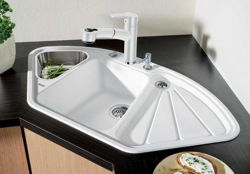 В основном раковины устанавливают в углу или возле примыкающей к санузлу стене, поскольку они привязаны к канализации. Но на сегодняшний день технологии позволяют монтировать её в любом месте кухонного гарнитура.