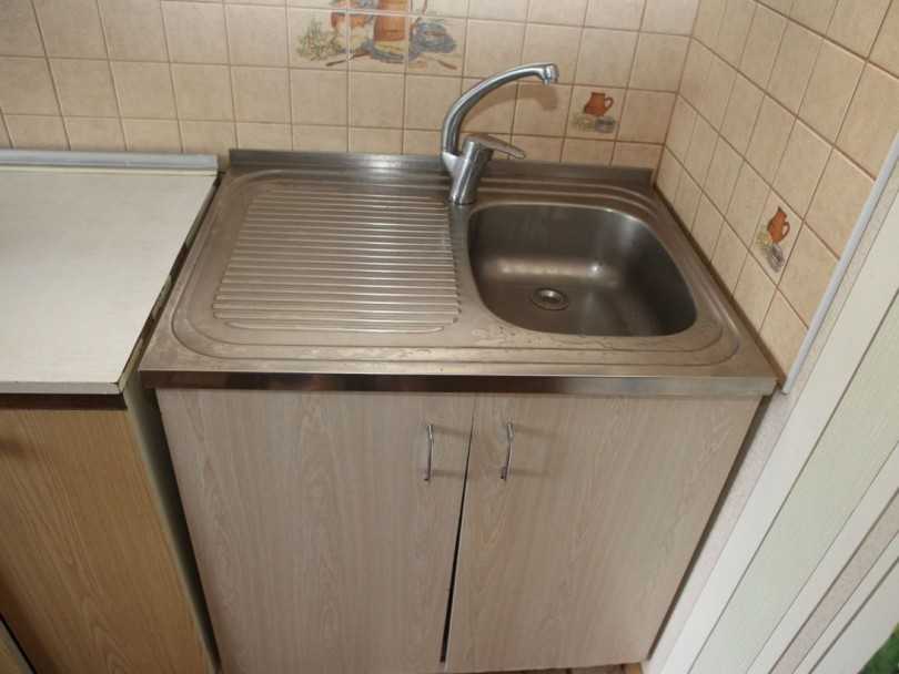 Недостаток – влажность, которая неизменно образуется между блоком с мойкой и рядом установленными шкафами. |