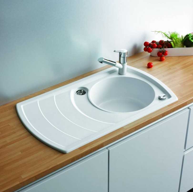 сочетание с интерьером: редко, когда акриловая белая мойка вписывается в дизайн кухни, поэтому важно подобрать подходящую по текстуре модель, чтобы не нарушить целостность кухонного пространства.
