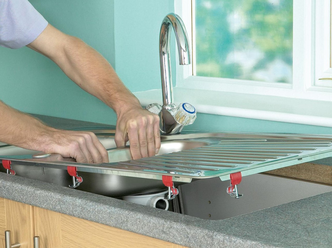 Крепеж мойки проводится с четырех углов мойки, что может потребовать «акробатических» навыков. При установке накладной мойки не забудьте заранее установить смеситель на мойку.