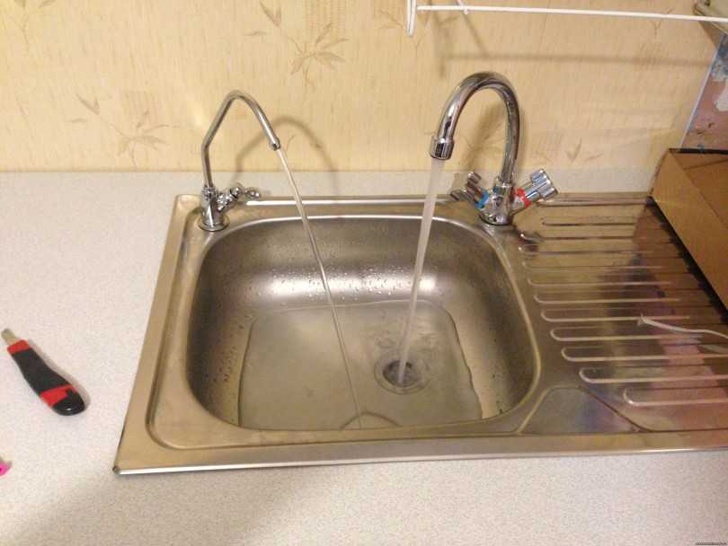 Если вы будете устанавливать блок фильтров под мойку, то можно обратить внимание на модели с дополнительным отверстием для второго крана. Конечно, его можно сделать и с помощью дрели, просверлив сквозное отверстие в столешнице