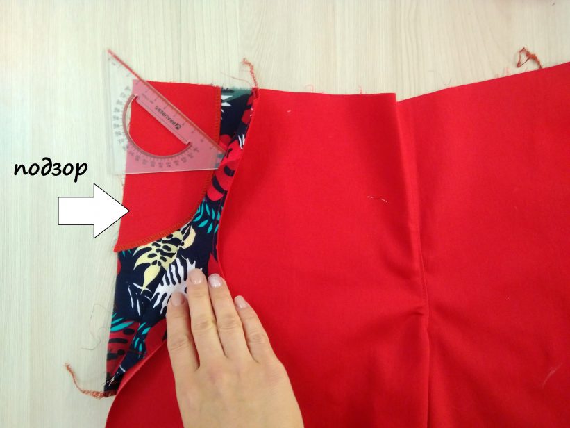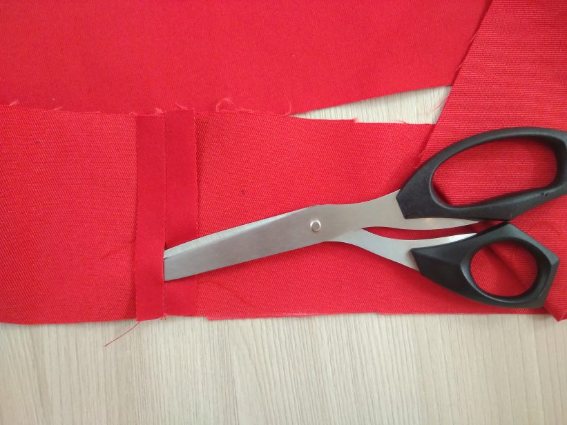 05. Через каждые 4 см. острием ножниц делаю рассечки по припуску не доходя до строчки на 1 мм.