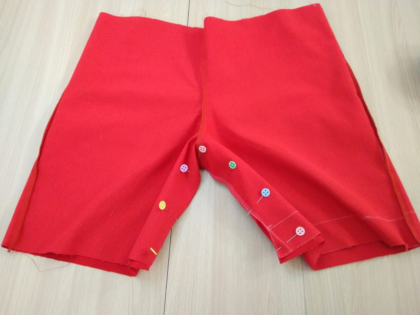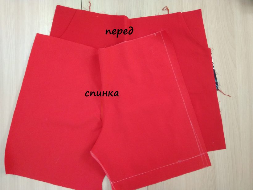07. Накладываю детали переда и спинки шорт друг на друга лицевыми сторонами внутрь.